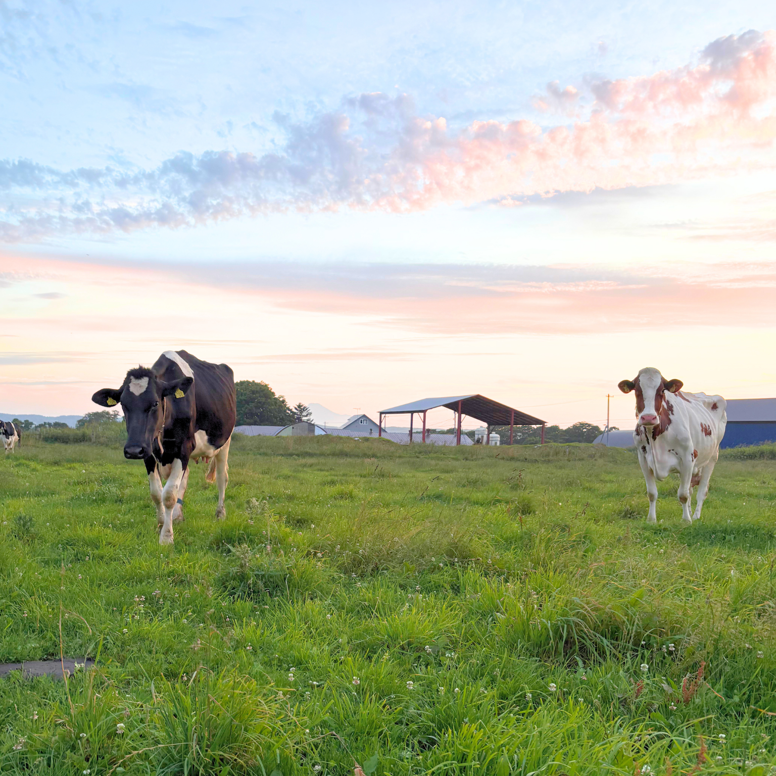 私たちの牧場は、北海道北部・豊富町にあります。夏は放牧地で、牛たちがのびのびと過ごしています。